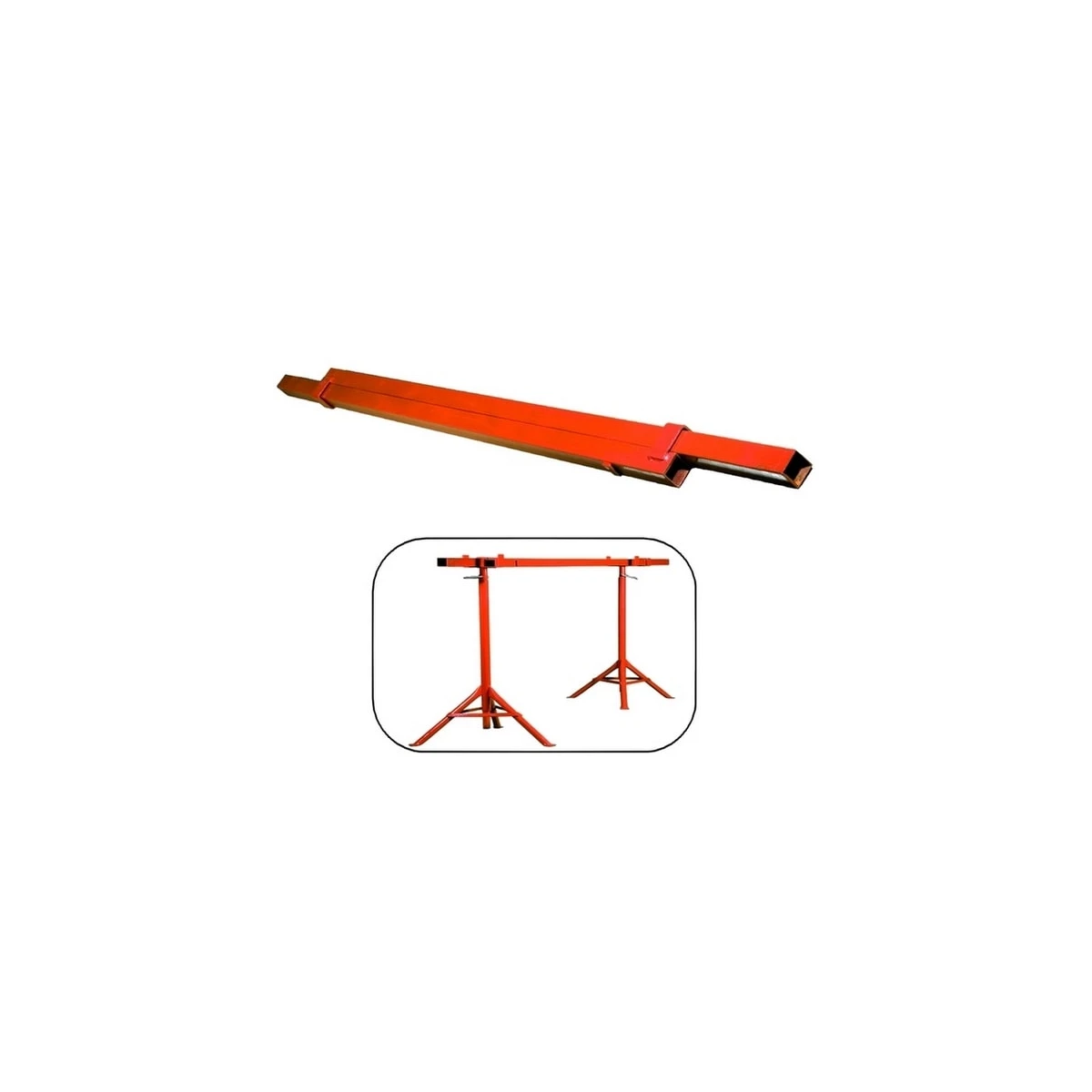 Les chevrons peints s’adaptent aux trépieds de plâtrier pour créer une plateforme de travail extensible en hauteur et en longueur.