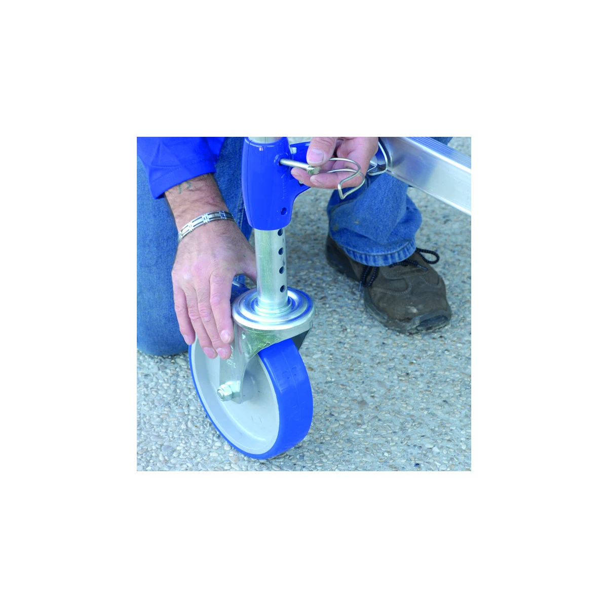 – Roue de 200 mm de diamètre réglable sur 175 mm et tous les 12.5 mm. Idéal pour tous types de sols.