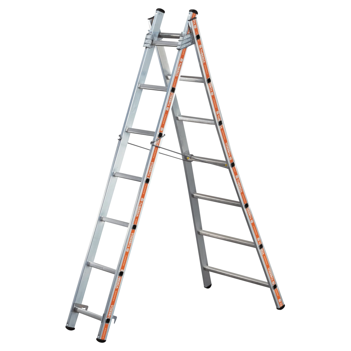 L’échelle transformable 2 plans Pronor dispose d’une base évasée, d’un bras anti écartement qui lui garantissent confort et fiabilité.