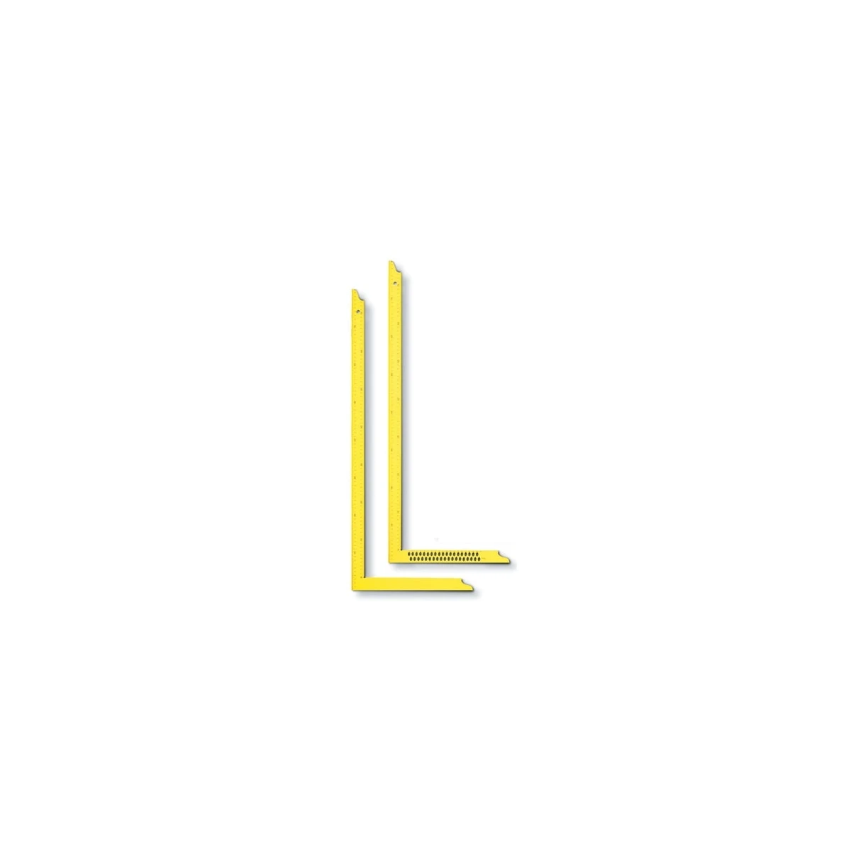 Repère de traçage sur le talon de 5 en 5 mm, graduation mm sur les 2 arêtes de la grande branche.