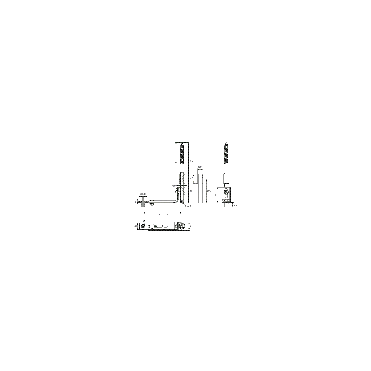 Longueur côté A : 120 – 195 mm