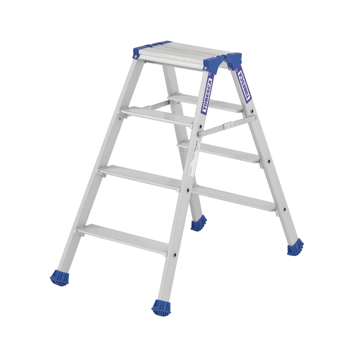 Ce double marchepied de chantier dispose de marches de 90 mm avec un système de rotation breveté et d’une plate-forme de 350 x 220 mm.