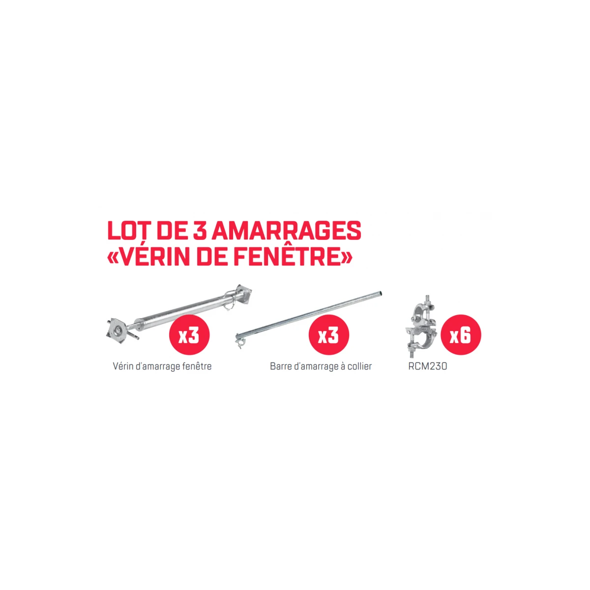 Lot composé de 3 amarrages type « vérin de fenêtre » pour échafaudage R200 Tubesca Comabi.