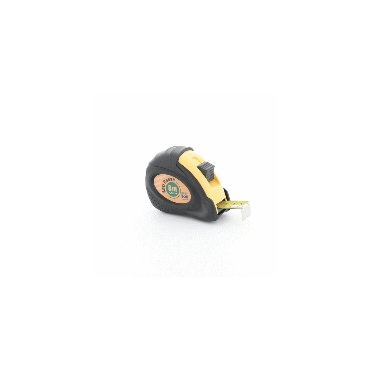 Ruban de mesure jaune mat 8 m x 25 mm, de précision classe II. Boîtier largement enveloppé par l’élastomère qui assure une grande résistance au choc.